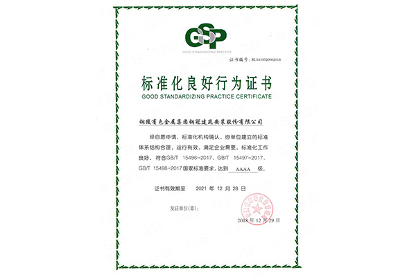 標準化良好行為證書